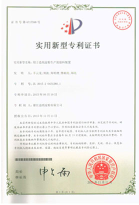 • 造紙淀粉用設備實用新型專利證書